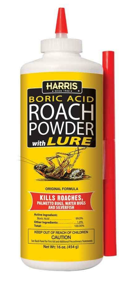 This mix of pest control powder is made of three parts boric acid with one part powdered sugar. The sugar lures the roaches, while the boric acid kills them. Although the boric acid isn't toxic to people or pets, it can be irritating so keep it away from counters and places where little fingers and noses can reach. Sprinkle it under and behind the refrigerator, stove and dishwasher, under the sink, and into cracks along the edges of cabinets and pantries.